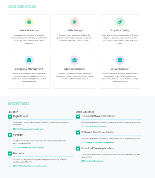 portfolioize is a clear and simple HTML template based on Bootstrap 5. The ideal option for your online identity is portfolioize, a feature-rich, attractive template. portfolioize has excellent design and features, and it has a one-page style demo. Every section required for a Portfolio Website website is present in portfolioize. You may quickly and easily display your Portfolio Website, accomplishments, and partners with portfolioize.